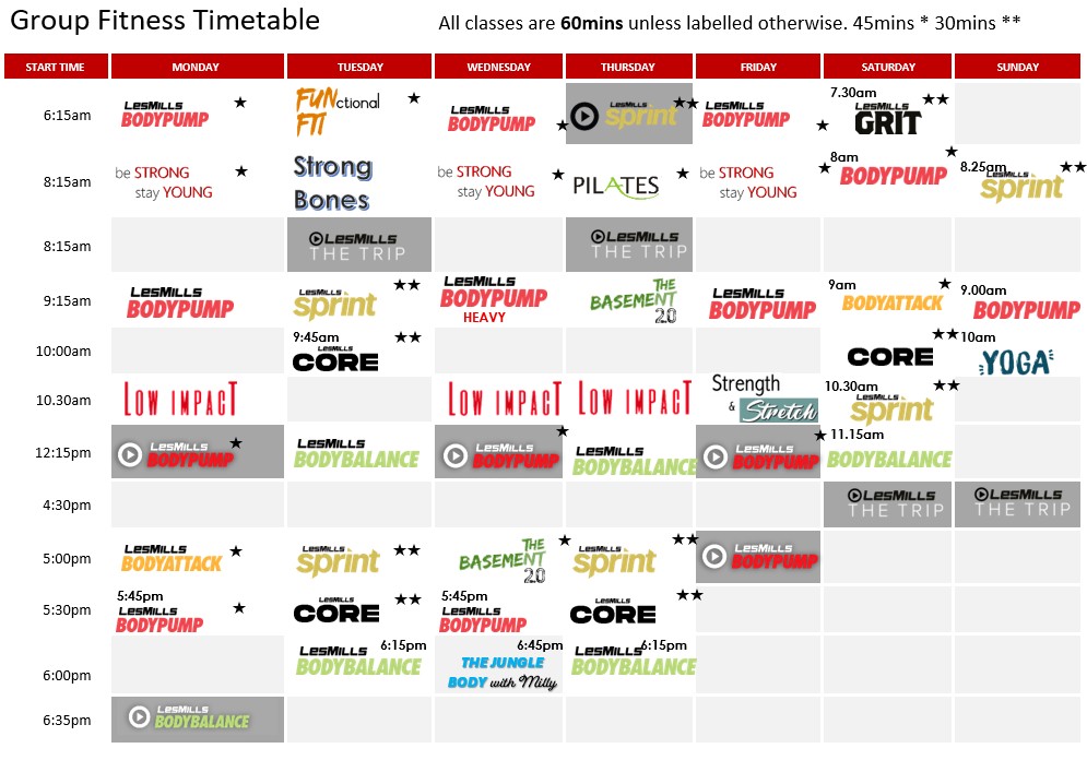 Below is our class timetable for 2026.